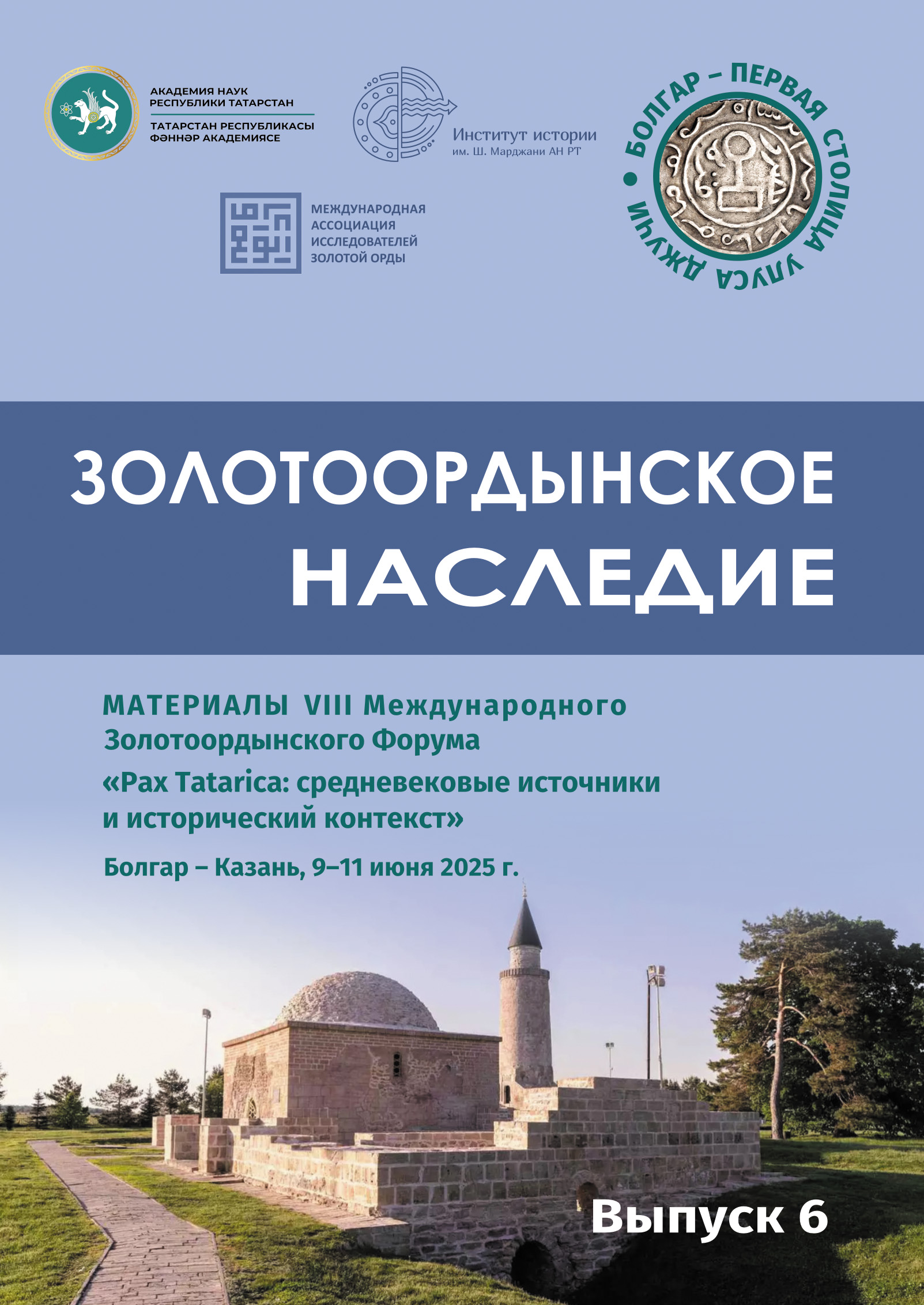 GOLDEN HORDE LEGACY: Materials of the VIII International Golden Horde Forum “Pax Tatarica: Medieval Sources and Historical Context”, Bolgar–Kazan, June 9–11, 2025. Issue 6. – Kazan: Marjani Institute of History of the Tatarstan Academy of Sciences, 2025. – 476 p., with illustrations.